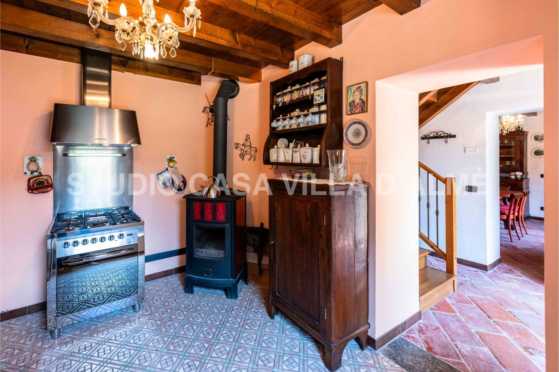 Al piano terra si trova l'ampia sala da pranzo, luminosa e accogliente, con accesso diretto al cortile. La cucina, spaziosa e completamente arredata, è perfetta per chi ama trascorrere del tempo ai fornelli. Completa il piano il bagno con zona lavanderia.